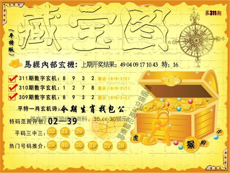 | 309期: | 羊鸡狗 | 开:鼠06中 |